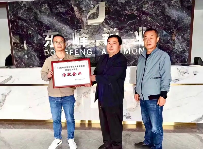 11月6日,黔南州科學(xué)技術(shù)局何書杰副局長、科技規(guī)劃和創(chuàng)新發(fā)展科科長陳賓以及獨山縣發(fā)展和改革局科技綜合科負(fù)責(zé)人羅紅一行來到貴州東峰銻業(yè)股份有限公司,為東峰銻業(yè)頒發(fā)了“2022年度貴州省規(guī)上工業(yè)企業(yè)研發(fā)投入增長活躍企業(yè)”榮譽獎牌,充分肯定了東峰銻業(yè)在科技創(chuàng)新和研發(fā)投入方面所開展的工作。