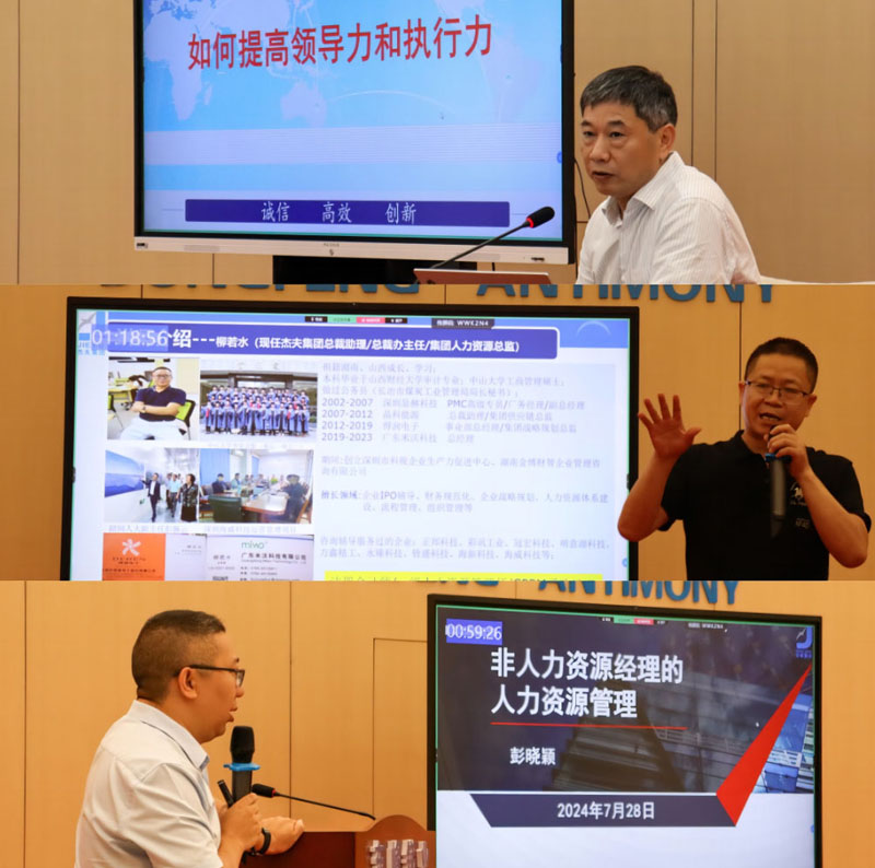 7月28日,東峰銻業(yè)商學(xué)院開展了第三季度培訓(xùn)。本次培訓(xùn)邀請到東峰股份人力資源總監(jiān)彭曉穎、杰夫集團總裁助理柳若水、行業(yè)資深專家陳建權(quán)三位老師傾情授課。