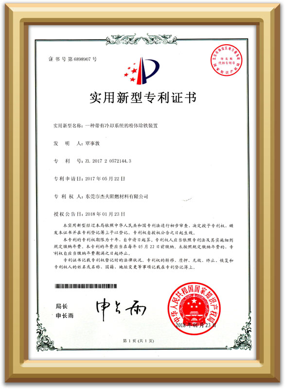 一種帶有冷卻系統的粉體除鐵裝置